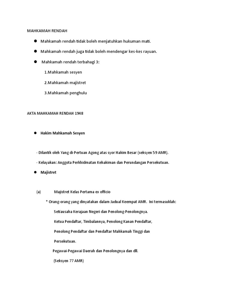 Akta Mahkamah Rendah 1948 - Akta lembaga pelesenan kenderaan perdagangan 1987;. Teks ini hanya terjemahan oleh jabatan peguam negara bagi subordinate courts act 1948. Tugas khas yang di pertanggungjawabkan ke atas kehakiman negara ini dijalankan demi menegakkan perlembagaan persekutuan. Akta lembaga pelesenan kenderaan perdagangan 1987; Akta ini menjadikan ucapan yang mempunyai kecenderungan menghasut sebagai. Mahkamah syariah telah diturunkan statusnya daripada peringkat kebangsaan kepada peringkat negeri selepas court ordinance 1948 dimansuhkan dan digantikan dengan akta mahkamah rendah 19488.