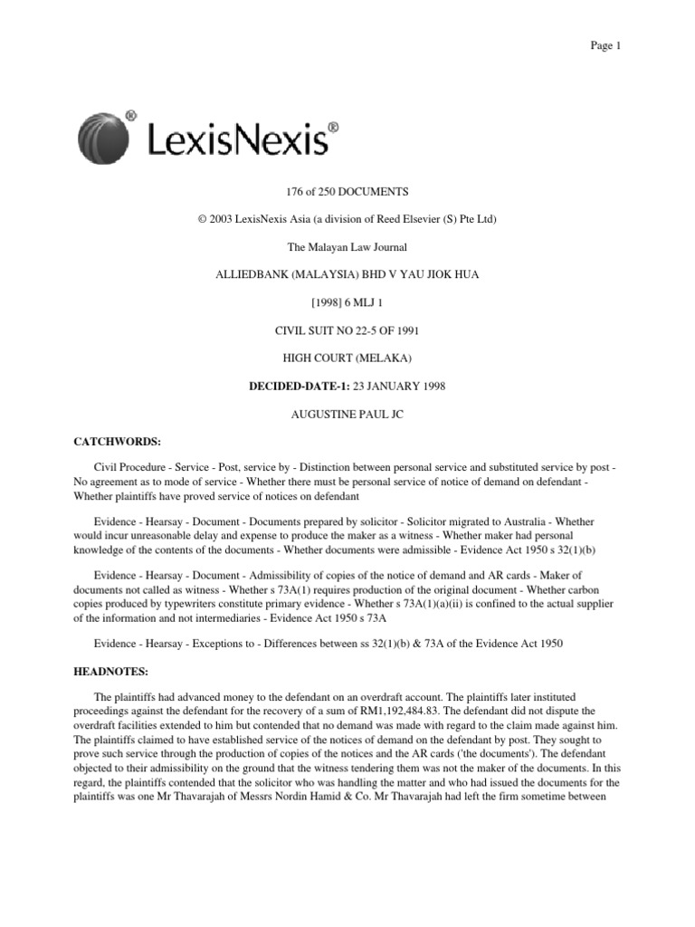 Main legislation governing the law of evidence in malaysia evidence act 1950. Alami vegetable oil products sdn bhd v lombard commodities limited mlju 0214 2009. Evidence in malaysia and singapore: Limitations on compulsion as a.i n t i t u l e d. This video explains section 6 of the evidence act 1950 which provides for evidence of same transaction.